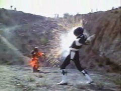 | The Black Ranger battles against the Knasty Knight, but is quickly overpowered. |