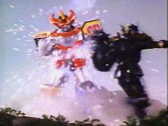 The Megazord recharges the Power Sword and reflects the Knasty Knight's own energy back at it, destroying him. |