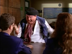 Bulk arrives at the audition. Bulk is asked to take his glasses off to reveal sunburn.