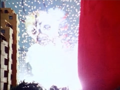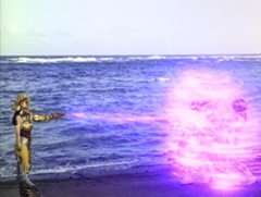 The Rangers try their Blade Blasters on the cocoon. They escape from it.