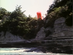 The putties drop the ranger-filled cocoon off a cliff into the ocean.