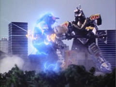 Dragonzord in Battle Mode is formed. Jason puts his zord on remote and they fight the trio.