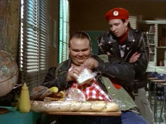 | Bulk takes out impossibly large things out of a small lunch box. Skull tries to get a bite, he is given a soda. |