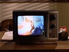 Bulk takes out a TV to see his cartoon. |