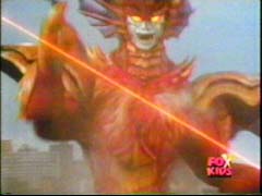 Then the Supetrain and Lightspeed Megazords join the battle. An airborne Olympius strikes them down. |