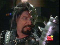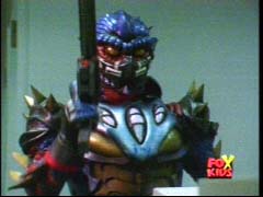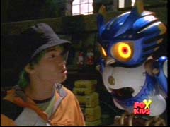 | The Rangers morph and bust into the place. The Guardians are there battling Cyclobots. |