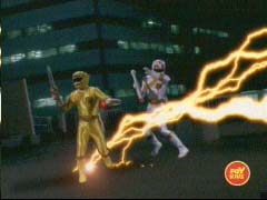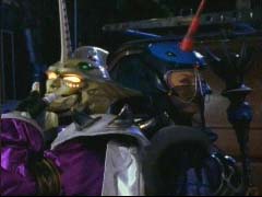 In the city, four Rangers battle two powerful creatures. The heroes are outmatached. |
