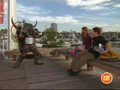 The other Rangers go down to help. Cole lures Camera Org away. |