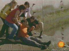 | Max desperately wants his bottle back, so he tackles Ship Org into the lake. |