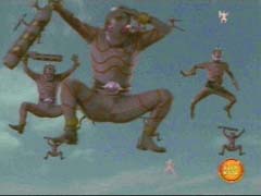 Then the Rangers form the Jungle Sword and take him down. |