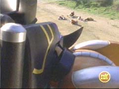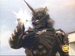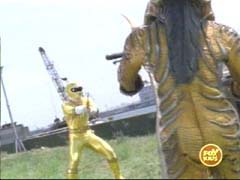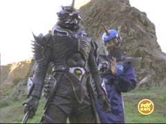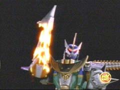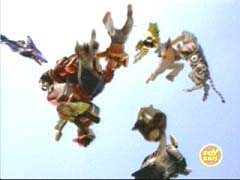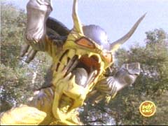 He delivers a devastating attack at the Wild Force Megazord, breaking it apart, and sending the Rangers flying. |