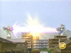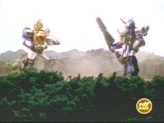 | The Zords come out and play. Wild Force Megazord vs. Predazord. |