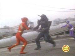 | Zen-Aku fights the other four Rangers, and beats them all up. |