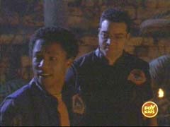 After Shayla tells the Rangers that she saw Zen-Aku bleed, they realize he must be human. They track him down to talk to him. |