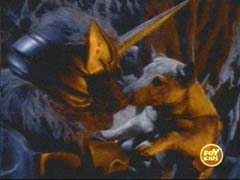 Shayla tells the Rangers that the one in the vision was Animus, an ancient Megazord. |
