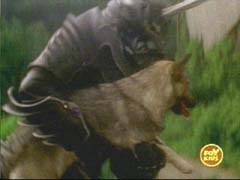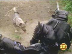 But he isn't able to. Zen-Aku's wolf buddy gets in the way. |