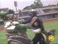 | Zen-Aku jumps in, wanting the Rangers for himself. He quarrels with the lawnmower over it. |