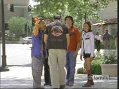Late for a job, Kendall is given a ride by Collin, while Danny follows behind on Alyssa's bike. |