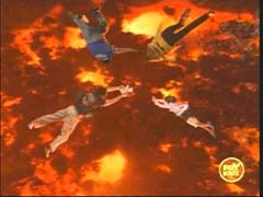 | Jindrax and Toxica are angry now. They attack the two Rangers. |
