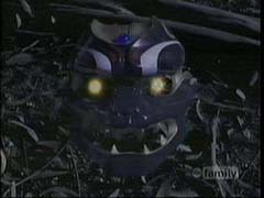 | When Zen-Aku grows into a giant, the Rangers call on the Wild Force Megazord and Predazord. |