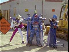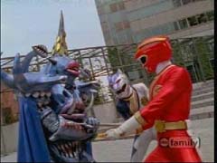| The other Rangers catch up, and they all battle the three Orgs. |