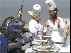 | The Rangers form the Jungle Sword and take down Flute Org. |