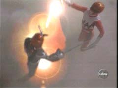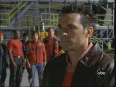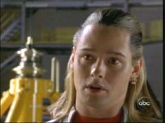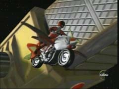 | Just as Tommy wonders why the final Red Ranger has not arrived yet, a biker pulls up to the space port - Jason, the original Red Ranger. |