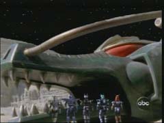 | He takes to the skies in the gigantic Zord. Jason suggests that they head to the Megaship. |