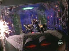 The Red Rangers storm the place and tell Venjix where to stuff it. He sends the Cogs to attack them. |