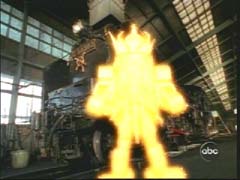 | The Rangers arrive at the train yard and encounter Locomotive Org. |
