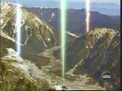 | The beams of light fade, as the force field goes down. |