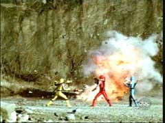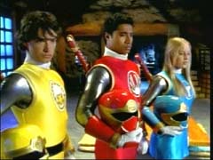 The three go outside to try out their new morphers on Lothor's army. Shane can't quite get the morphing call right, but Dustin does. |