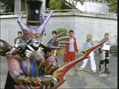 Cam explains that Cyber Cam got a little overzealous and tied him up.Fragraspots the Rangers and attacks. They all morph and battle her. |