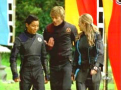 The Thunders find Cam, Marah and Kapri tied up. They rescue them, free the ninja students, and fight their way off the ship as it explodes. |