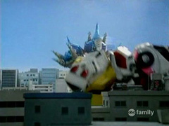 Meanwhile the other Rangers gather their strength together and the Delta Squad Megazord destroys the robot. |
