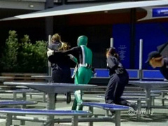 The Rangers morph into action to stop the attack. "S.P.D. Emergency!" |