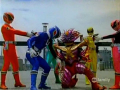 | Sky morphs into the Blue Ranger and joins the team to take down Wootox. |