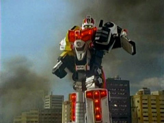 | Thinking they had defeated the Krybots, the Rangers form the Delta Squad Megazord and destroy Greeneyes' giant robot. |
