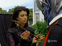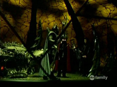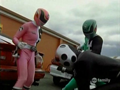 The Green Ranger tricks Syd into morphing into the Pink Ranger, which frees her from Mysticon's spell. |