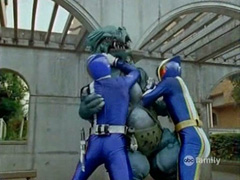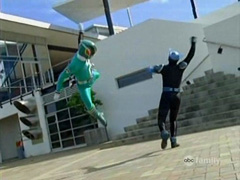 The Green Ranger joins in and faces off against a Bluehead Krybot. |