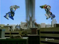 Kat insists to the Rangers to combine the Delta Squad Megazord and the Omegamax Megazord to create the Deltamax Megazord to save the day. |