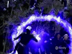 | The Yellow Ranger rescues Shadow and Omega Rangers from their energy prison. |