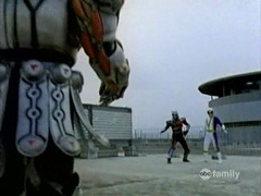 Meanwhile, the Shadow and Omega Rangers face off against Thresher in Stench, but against the stolen technology, they get owned. |