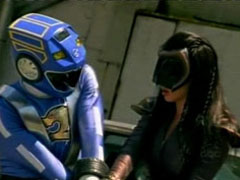 Dr. K lets the five Rangers ask her questions about the suits, vehicles and gear, they are timid at first but they all raise their hands and ask about the eyes of the zords.. |