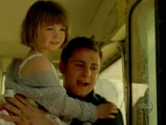 Back to the flashback, Flynn runs into the bus to save the little girl. His dad tells him no but he says it is just who he is. |