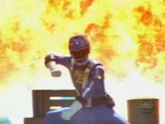 The explosions after they morph and screaming out the morphing call. Dr. K mentions comic books and it sparks Flynn off in a flashback. |