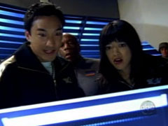 | Dr. K reports that the oxygen levels are back to normal. Dr. K gives each Ranger a compliment on the battle. Ziggy complains again that they are older. Dr. K tells Summer she has nice shoes. |