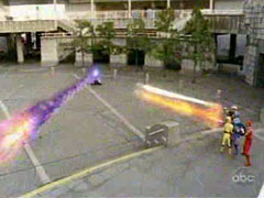 | Venjix, Crunch, Tenaya and the new bot are in Corinth. The 7 Rangers face him. The new bot eats the Ranger's energy and throws it back. Black tells Green to stop, he has a headache, and then says he is okay but is clearly not. He takes down the bot. The 7 form their blasters. The new bot absorbs the attack and throws it back. They all de-morph. The Rangers return to the lab. K says the bot disturbed the bio fields. She can repair them for a bit but they has destroy the bot. K notices something wrong with Black, he says he is okay and leaves. The twins say the Grinder must be lost, going in circles. Dillon and Ziggy are outside, Black says there is no point--the virus will get him. Ziggy says he will take him by force to get the scan, making him laugh and they go. They get attacked by the new bot, morph & battle. |