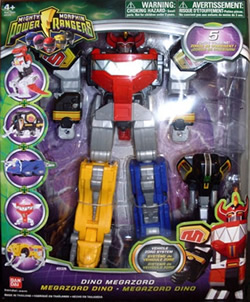* [31476] Deluxe Dino Megazord Tyrannosaurus, Pteradactyl, Triceratops, Mastadon and Sabertooth Tiger Dino zords combine to create the legendary Megazord. A bit smaller than the original 1993 version. |