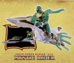 ** [25042] Mystic Rider / Racer - Green Ranger's rocket broom vehicle. Has spinning action. Renamed Mystic Racer as in the show. Red is so available, not pictured. In Japan, other colors were avaliable and did not have missile action. |